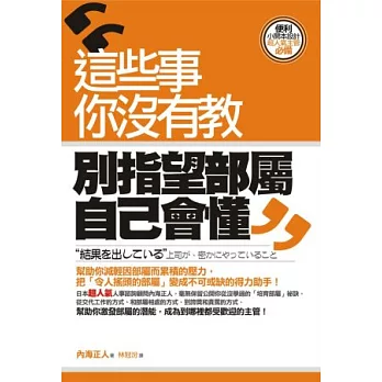 三明治主管怎麼當:讓上司買單下屬服氣的8個訣竅![]() | 這些事你沒有教,別指望部屬自己會懂![]() | 哈佛教你帶人學![]() |