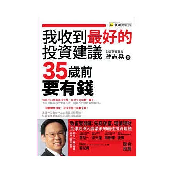 《我收到最好的投資建議──35歲前要有錢》提醒你要掌握一生僅有一次的貧富逆轉契機,接受財富管理專家給你的最好投資建議──先窮後富、理債理財,把握住這致富雙關鍵,就能讓你在往後數十年高枕無憂。